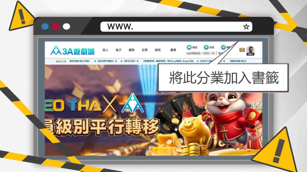 1. 記得將 3A娛樂城的登入網址加入書籤,避免誤點到假網站被釣魚。