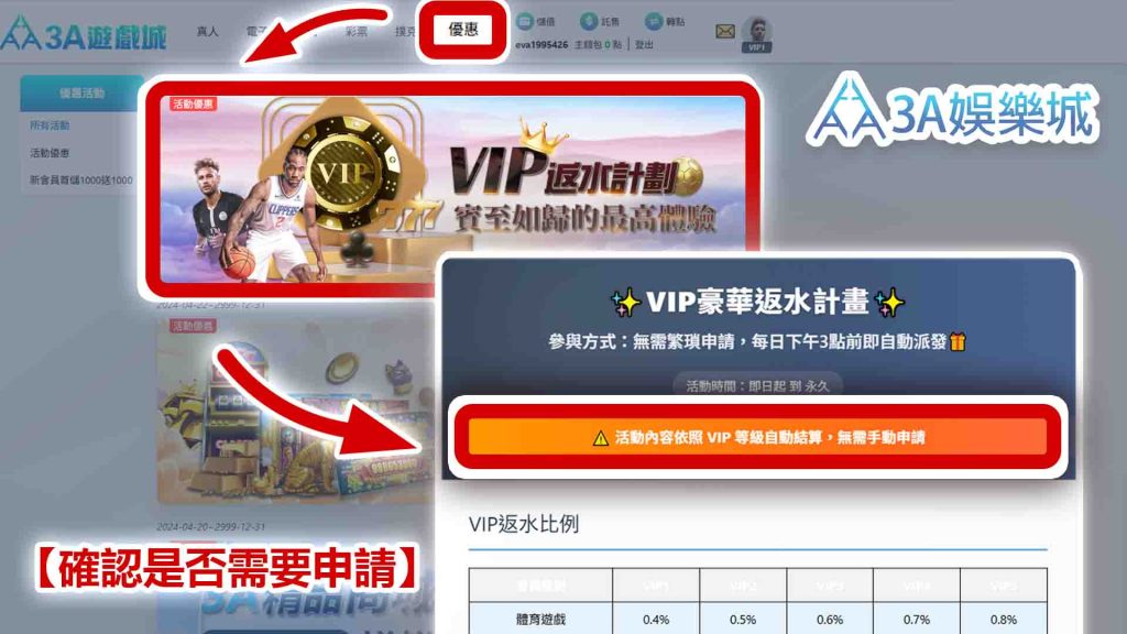 3A娛樂城優惠活動-VIP返水計畫 寶至如歸的最高體驗