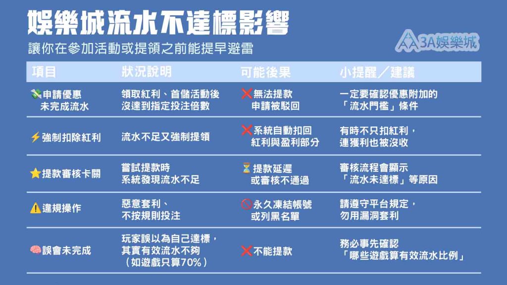 另外,如果你沒達到指定流水就急著提款,那活動紅利通常會被扣回,甚至有可能會取消整筆優惠紀錄。簡單說就是,投注不達標 = 不能領獎金!