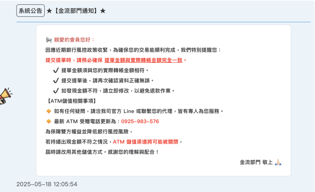 入款幾乎為即時到帳,使用常見金流方式(如銀行轉帳或虛擬幣)都能快速完成。