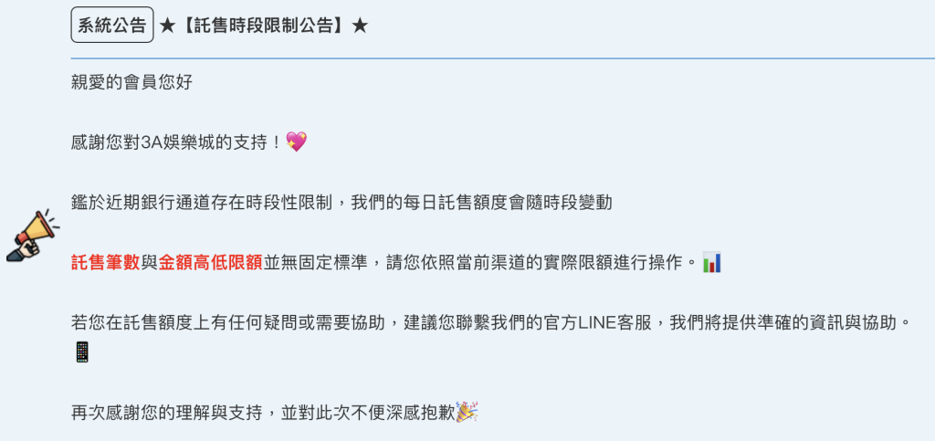本篇文章將從玩家角度出發,實測3A娛樂城的出入款速度、24H出金是否真實可行,以及實際提款過程是否順暢透明。不論你是新手想加入,還是舊玩家正在觀望,都能透過這篇一次掌握3A娛樂城出金的所有資訊。